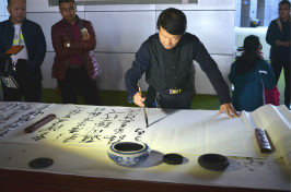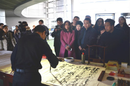 为“纪念红军长征胜利80周年”,同时纪念毛泽东同志诞辰123周年,中国毛体书法家协会会员张随成先生亲临东胜区图书馆,他多年来潜心研摹“毛体”书法艺术,造诣颇深,在开展现场泼墨挥毫即兴创作书法作品,为广大读者带来一场视觉盛宴。此次展出作品有80多幅,展览为期2周,开展时间为12月10日到12月24日。 走进展厅,首先映入眼前的是三幅苍劲有力的毛体书法,体式雍容大度,章法纵横驰骋,笔墨潇洒淋漓,浑然天成。随后在馆领导带领下一行人参观毛体书法作品,参展作品形式丰富,内涵深刻,饱含正能量,吸引了各地百余名书画爱好者前来观赏,大家在水墨丹青间重温了长征历程,感受了长征精神,细细品味出了长征精神所蕴含的时代意义,受到社会各界人士的一致好评,纷纷表示上了一堂丰富的红色教育课。 这次张随成先生的书法在我馆展出,给我们提供了一次难得的学习机会,给我市书法家和爱好者提供了一个艺术交流的平台,为我市以后的书艺交流打下良好的基础。希望通过这次书法展,能够重温党的光辉历史,铭记党的光荣传统。