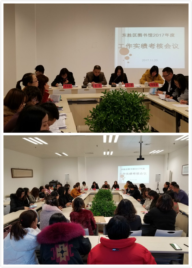 11月20日上午,区文体旅局2017年度工作实绩考核组一行到图书馆开展年度目标任务完成情况考核。此次考核是对我馆全年工作的一次总测评,我馆高度重视。一是在接到考核正式通知后召开专门会议,布置迎考工作。二是对相关资料和台账进行整理归档,做到有条有理。 工作实绩考核会议上,考核组首先听取了王芳馆长关于本年度工作总结及2018年工作计划的汇报,并对班子成员进行了民主测评。会后,考核人员分别对本年度党建、党风廉政、精神文明、业务工作及财务审计相关工作进行资料审核查看。整个考核过程真刀实枪,不留形式。经过认真的全面考核后,考核组一行对我馆本年度党建、精神文明及各项业务工作开展情况给予全面细致点评并指明今后努力方向,对一年来图书馆各项工作取得的新成效、新进展给予充分肯定,并鼓励图书馆人以十九大精神为指引,不忘初心,牢记使命,争取各项工作取得更大成效。 此次考核,不仅是对本年度工作的总评,还将为图书馆做好下一年度工作进行一次有力的鞭策。图书馆将深入学习贯彻落实十九大精神,以高度的文化自觉和文化自信引领全民阅读推广,坚持“以读者需求确立定位、以使用体验引领服务、以新技术应用支撑发展”理念,助推全民阅读新浪潮、力求全民阅读长效机制建设取得新突破、实现书香东胜新风貌,着力铸造“东胜,因热爱读书而受人尊重”的城市文化品牌。