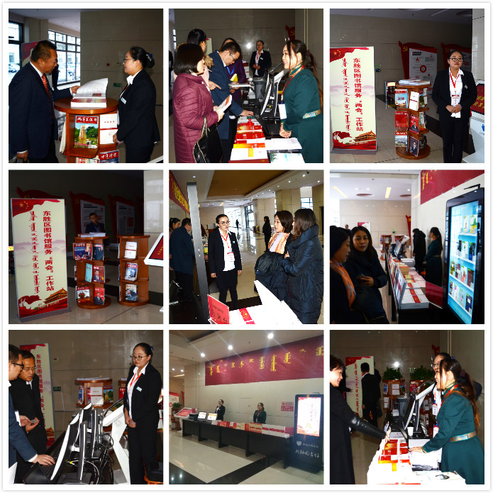 为充分发挥图书馆的信息服务职能,满足立法决策机构和“两会”代表、委员的信息需求,区图书馆继续在“两会”现场设立咨询服务点,以传统咨询手段和现代技术相结合的形式,积极为与会代表、委员提供全面的、系统的、可靠的信息服务。 今年的服务又有哪些亮点呢? 1.“两会”专题资料汇编成为品牌 专题资料汇编紧跟当前国民经济和社会发展的热点、焦点问题及鄂尔多斯市、东胜区发展重点,工作人员多方收集、精心遴选出“大政方针”、“政策解读”、“大数据统计”、“两学一做”等专题,为“两会”代表及委员提供科学、深入的专题信息服务。 2. 现场服务“零距离” 现场放置宣传展板,发送宣传资料,方便“两会”代表、委员进一步了解和使用图书馆服务平台;设置书报刊专架、 “你阅读 我买单”服务专区,并开通现场办证、借阅、图书荐购及参考咨询服务,同时提供现场打印、复印服务。 3.全方位数字化服务