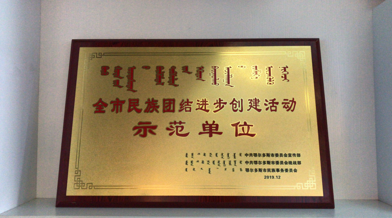 被鄂尔多斯市委员会宣传部、中共鄂尔多斯市委员会统战部、鄂尔多斯市民族事务委员会被评为“第四批鄂尔多斯 市民族团结进步创建活动示范单位”