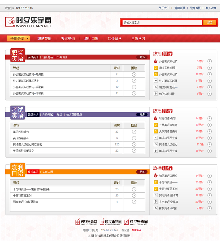 《时夕乐学网》是上海上业信息科技有限公司自主研发的一套个性化、先进技术的网络学习平台,并与国内公司深入合作,整合了最新的外语考试、职场英语等视频资源。