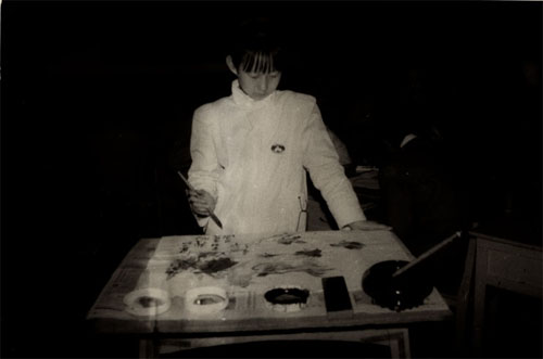 一九八九年春,书画培训班获得绘画一等奖的李柔峻小学生在认真绘画