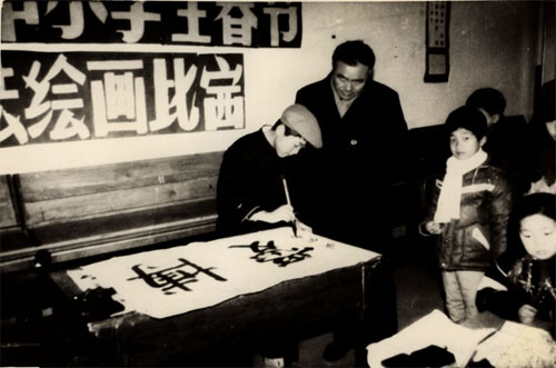 一九八九年春节,纺织公司子弟学校一等奖获得者在作画现场的表演