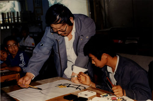 一九八九年暑假期间, 绘画班的李老师在给学生们辅导水笔画