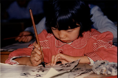 一九八九年暑假期间, 三年级的小学生在认真学习书法