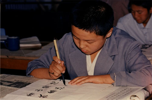 一九八九年暑假期间, 书法班的小学生在认真练字