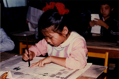 一九八九年暑假期间, 一年级的小学生在认真练字