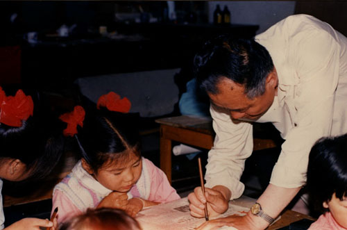 一九八九年暑假期间,书法老师金大鹏在认真给学生作示范