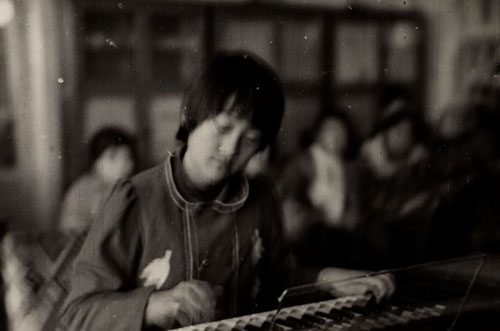 一九九〇年春节,少儿电子琴比赛中学生认真弹奏