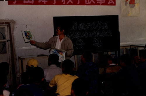 一九九〇年暑假, 在结业典礼会上李老师讲解绘画一等奖者作品