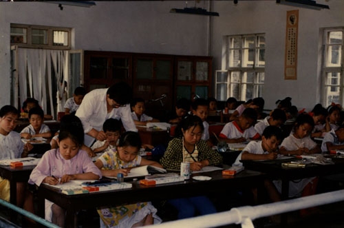 一九九〇年暑假,绘画培训班的学生在最后结束课时进行比赛情况