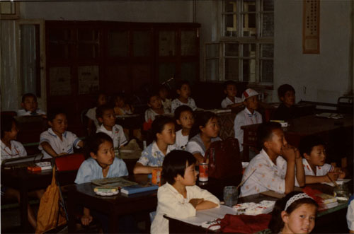 一九九〇年暑假,少儿绘画班的学生认真听老师讲课