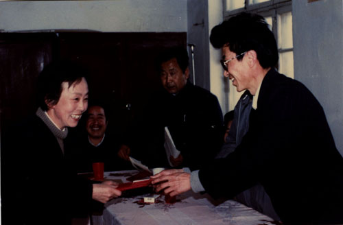 一九九二年四月,东胜市少儿图书馆全市文化工作会中市委干书记给徐凤英馆长发奖