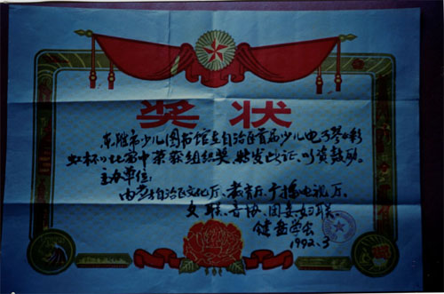 在1992年三月,东胜市少儿图书馆在自治区首届少儿电子琴比赛中荣获组织奖