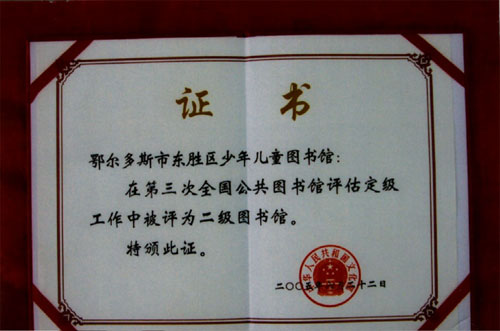 少儿图书馆在2005年第三次全国公共图书馆评定级工作中被评为二级图书馆
