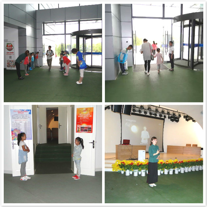 伴随着徐徐秋风,暑期就要结束了,但是在图书馆的报告厅中,有这么一群人,无论是成年人还是牙牙学语的孩子都在努力学习中华国粹,有传统经典诗文诵读,有精彩国艺展演,也有传统礼仪教学等等,这是图书馆联合意正书院为广大市民免费开展亲子国学大课堂的现场,为期15天的国学大课堂已经过去一半的时间了,许多家长领着小朋友们在这里一起认真的学习优秀传统文化度过一个有意义的暑期生活。 走进图书馆南门,首先看到的是两排比肩而立的学生,在恭敬欢迎前来上课的家长和学生们,开始上课时所有人都起立向孔老夫子行鞠躬礼,老师带领大家一起学习《论语》、《弟子规》、《国学启蒙》等,也会为大家带来关于父子情、夫妻情等家庭讲座,课堂上也会穿插关于国艺的学习,比如国画、茶道等等,在学习知识中也在潜移默化的学习生活礼仪,感恩父母的养育之恩,感谢老师的教导之情,对父母请安,身体力行的为父母按摩解乏,将中国的传统文化发扬光大,以至诚感恩恭敬的心,向大成至圣先师孔老夫子行三鞠躬礼,全体人员举起双手,左手轻握右手,置于额前,准备作礼,一鞠躬:感恩您度恶克艰论著经典;再鞠躬感恩您言传身教长善救失;三鞠躬感恩您学成古今力范后世。并于结束时,长者先,幼者后的按顺序走出报告厅。让我们一起看看他们的学习成果吧!
