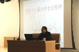 在图书馆多功能厅召开,号召全体职工对会议精神进行再次深入学习。 在近两个小时的时间里,刘向东局长分别从“怎么看”、“怎么学”、“怎么做”三个方面将十八届六中全会精神、《准则》及《条例》内容分别进行解读,用通俗易懂的语言将六中全会指出的重大理论观点、重大战略思想、重大工作部署传达清楚,同时把图书馆现存的重点难点问题分析清楚,真正使党的十八届六中全会入脑入心。