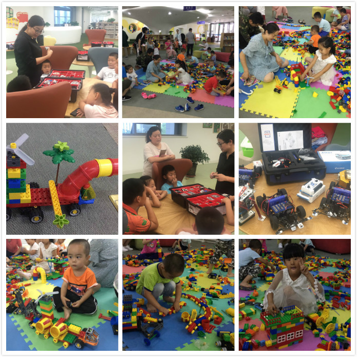 乐高作为一种益智玩具,以培养幼儿动手能力和创造力为目的,深受大家喜爱,是东胜区图书馆的“常客”。7月22日,乐高又“走进”东胜区图书馆,读者可根据年龄段,分别选择少儿阅读体验馆与青少年图书区进行体验。 青少年图书区活动现场(7—13岁) 这是一场与机器人相会的活动,50余位小读者带着好奇心参与了智能机器人小车的搭建。老师耐心地讲解了机器人的基本构成和工作原理,让小朋友了解到机器人系统的中枢就像大脑一样控制、指挥机器人的行为,学习了乐高小零件拼插及乐高图形化编程软件 。 半个小时后,小读者们的作品有模有样的出现了,让家长们叹为观止,孩子们创作过程中表现出的创意和想法给了家长们不小的惊喜。 少儿阅读体验馆活动现场(3—7岁) 100余位小读者参与此次活动,活动中孩子充分发挥想象力,与爸爸妈妈合作,利用乐高积木完成了精致的房子、美丽的空中花园、超大型的运输车、长长的火车、奇特的空陆两用大卡车等创意作品,孩子们看到自己的作品个个兴奋不已,陶醉其中,切身体会到创作的乐趣。 孩子们尽早地接触乐高等创客空间活动,有利于提高其综合素质,拓展思维,从小学会学习、学会动手、学会思考、学会创新,从应试教育的桎梏下解放出来,成为内心真正自由的有创造力的人。