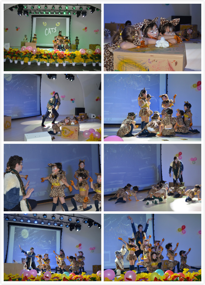 活泼可爱的小朋友们用稚嫩略带生涩的舞台表演,竭尽全力为广大观众呈现出一场有趣的音乐剧。他们身着各色猫的服饰,演出在一个巨大垃圾场内,众多猫们举办一年一度的舞会情景,在舞会上猫们用自己的歌声和舞蹈讲述自己故事,能够被选重的猫可以获得重生,最后一只“魅力猫”以一曲《回忆》打动所有的猫成为可以升入天堂。