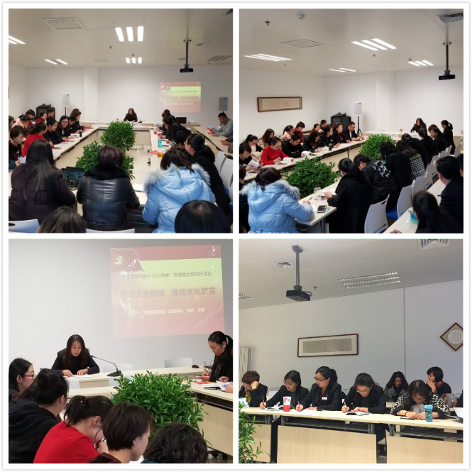 11月21日下午,东胜区图书馆党支部书记以“坚定文化自信 推动文化繁荣”为题,为全馆党员干部带来了一场别开生面的专题党课。 党课以“学习贯彻党的十九大精神的重大意义”为开篇,全面的阐述了学习贯彻十九大精神的现实意义和深远历史意义。随后,结合图书馆工作实际,以“文化自信”为重点,从“我们的自信文化是什么”、“文化自信的功能是什么”、“文化自信干什么”三个方面展开系统的讲解。同时,支部书记提出,要把学习宣传贯彻党的十九大精神作为当前及今后一个时期的首要政治任务,领导干部要带头学习,通过集中和自学相结合的方式,学习贯彻十九大精神,着力在学懂弄通做实上下功夫;要充分发挥好图书馆文化阵地的作用,提供更多优质的公共阅读、讲座、展览等活动,引导全区广大干部群众将思想和行动统一到党的十九大精神上来,为建设现代化东胜提供强有力的精神动力和文化支撑。 最后强调,要以本次“讲党课”为学习契机,在全馆范围内掀起深入开展党的十九大精神宣贯热潮,以十九大精神指导图书馆发展实践,牢固树立“四个意识”,坚持“四个自信”,以新时代新思想引领图书馆向更高目标迈进。