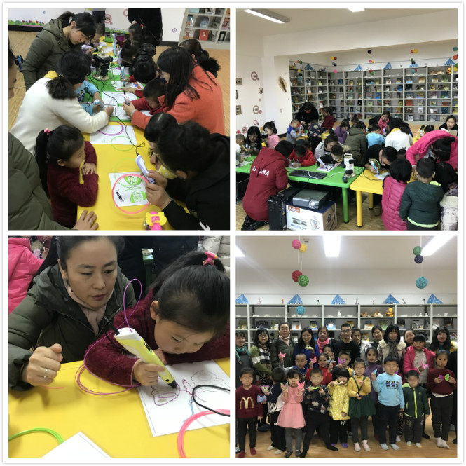 活动前郭佳铭老师对家长及小朋友科普3D打印知识,介绍3D打印笔的使用方法,二维与三维的认知,随着老师的讲解,参与活动的小朋友及家长一起设计、绘制,最后组装完成自己的作品。