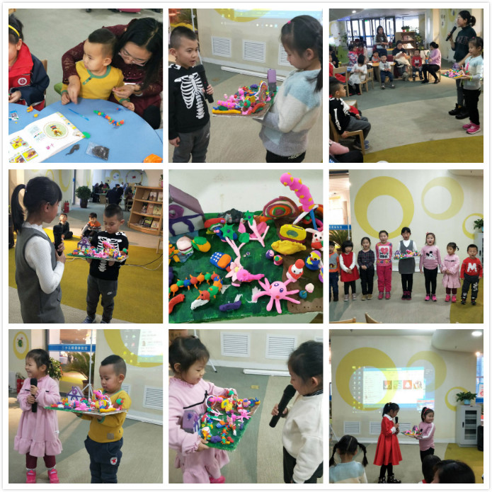 小朋友们发挥自己的想象利用橡皮泥创作出自己喜欢的作品,有的做出小动物,有的做出小房子,然后拼凑出来一个栩栩如生的故事画面,每个小朋友都说出自己作品的意义。