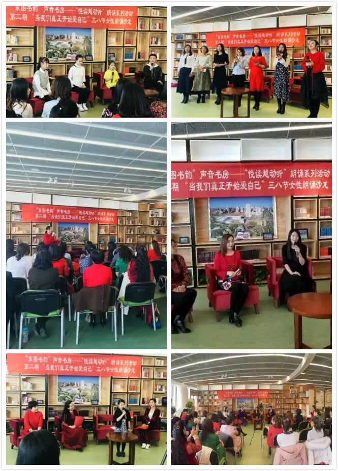 女人一生如玫瑰,聪慧有修养的女人懂得如何象玫瑰一样适时绽放!二十岁的青春年华、三十岁的知性优雅、四十岁的成熟风韵、五十岁的从容大气、六十岁的睿智淡然。知性女人的美不因时光流逝而消失,恰是岁月的沉淀,让美的本身多一份内在的优雅气质。3月4日下午,一群追求时尚、优雅、聪慧而不随波逐流的新时代女性共聚东胜区图书馆参加诗歌沙龙活动,大家一起阅读、一起朗诵、一起分享,共同度过属于女性特有的三八节。 “当我真正开始爱自己,我才认识到,所有的痛苦和情感的折磨,都只是提醒我:活着,不要违背自己的本心。今天我明白了,这叫做真实···”伴随着浪漫舒缓的音乐,高倩动情的朗诵着《印象董卿》,现场的观众也被带入诗歌的境界中,汲取着诗歌散发出来的醇香,品味着声音带来的魅力。 本次沙龙有来自社会各界,不同身份、不同职业的50余名女性参与其中,大家围坐一起,在充满书香、茶香和花香的图书馆内,开始了有关“新时代女性如何真正开始爱自己”的分享和探讨,席间语笑嫣嫣,明媚动人,在活动结束时每一位女性都用一句话寄语其他女性朋友,整场沙龙轻松、温馨、愉快,并具有一种特殊的人文情怀,在场的女性都表示以后要继续立足岗位、关爱家庭、提升素质,争做新时代女性。