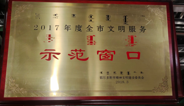 被鄂尔多斯市精神文明建设委员会评为2017年度全市文明服务“示范窗口”