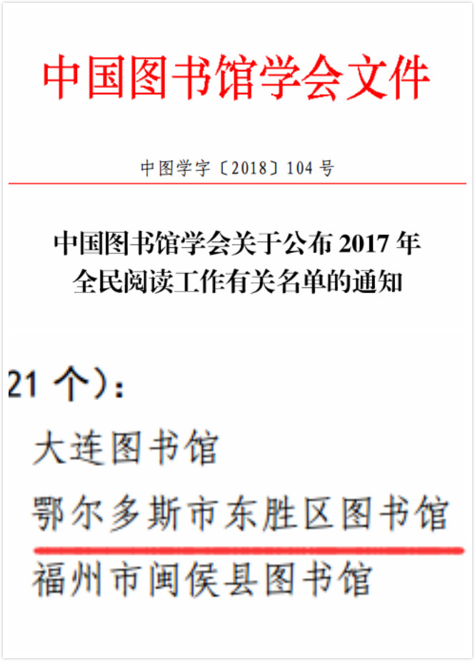 近日,东胜区图书馆荣获中国图书馆学会颁发的“2017年全民阅读优秀组织”荣誉称号,全国共有21家图书馆获此殊荣,东胜区图书馆是内蒙古自治区唯一上榜的图书馆。 东胜区图书馆自2012年鄂尔多斯市创建全国公共文化服务体系示范区以来,加速推进公共图书馆服务网络建设及智能化数字阅读服务体验平台建设,2016年占地3.3万平方米新馆正式启动,设中文阅览区、企业家书架、地方文献阅览区、蒙文阅览区等27个开放式功能区域,为读者创造温馨舒适的阅读环境。立足馆内建设的同时,不断延伸服务范围,已形成以区馆为中心,街道、镇文化站分馆为半径,社区、村图书馆为末梢,24小时自助图书馆、城市街区24小时自助图书馆、基层文化户为有效补充,共建共享、协同发展的三级公共网络服务体系,实现了区域公共图书馆阅读服务体系建设全覆盖;建立智慧墙大数据分析系统、电子资源馆外访问系统等九大数字系统构成的网络综合服务平台,创建适应科技进步与社会发展需求的数字图书馆,满足新一代读者的信息需求,将图书馆由封闭自守少数人进馆借阅的“小书斋”,转型为鼓励终身学习、全民阅读的“大书房”。 东胜区图书馆颠覆传统“采、编、藏、借”的服务模式,推出“你阅读 我买单”图书荐购惠民服务,让全民阅读推广活动深入人心,读者不掏腰包便能在第一时间将新书借回家,成为图书采购的决策者,极大地调动了市民的阅读热情。东胜区图书馆现年接待读者超过100万人次,年流通图书90万册次,市民综合阅读率逐年提高。 在加快服务硬件网络设施建设速度的同时,东胜区图书馆积极参与推动建立全民阅读长效机制,切实加强全民阅读推广工作力度。如,参与制定完成鄂尔多斯市首个区级《全民阅读中长期规划》,每年参与制定主题鲜明的东胜区全民阅读活动方案,并在世界读书日期间积极承办全民阅读主题活动启动仪式。通过建立全民阅读工作领导小组、制定全民阅读活动实施方案、组建全民阅读活动志愿服务队、组织开展形式多样的全民阅读活动,充分营造全民阅读氛围,全面建设“书香东胜”,推动全民阅读推广工作迈上新台阶。 坚持以活动引领阅读的发展理念,细分人群组织开展全民阅读活动。 在引领阅读风尚、提供阅读服务、实施阅读推广的过程中,东胜区图书馆馆提出并遵循“四点共建全民阅读圈”的工作思路,以保证个人阅读权利、提高个人阅读质量。一是引导,使不同阅读群体充分感受阅读的乐趣,针对不同群体开展不同类型的阅读推广活动,比如针对低幼儿童读者开展亲子手工制作、亲子故事会等活动;针对青少年读者开展朗读比赛、书法绘画比赛、彩色乐园宝宝涂鸦等活动;针对成人读者开展知识竞赛、读书分享会等活动;针对老年人读者开展健康知识讲座、计算机知识公益培训等活动,其中,计算机公益培训已连续举办七期,影响和带动我区近3000名老年人加入数字阅读队伍,产生良好社会效益。二是分享,使不善于阅读的人学会阅读,举办知名作家阅读讲座、写作指导讲座、地方名人访谈、线上阅读交流等活动。先后组织完成“全国未成年人服务提升计划暨全国“阅读推广人”培育行动第八期培训班”及“图书馆转型发展与创客空间建设研讨会”两次国家级会议服务工作,多次邀请知名专家到馆讲座,30名馆员获得“阅读推广人”荣誉徽章,进一步推动东胜区全民阅读活动深入开展。三是协助,解决特殊人群的阅读困难,全民阅读志愿服务队将志愿服务工作细划分为业务辅导、关爱特殊群体阅读、“家门口阅读”服务及帮扶助困等14个方向,结合汽车图书馆资源为各类特殊群体提供送书上门服务,为特殊教育学校学生带去盲文书籍、影像资料和生活用品;为敬老院的老人们读书念报;为务工子女学校学生进行阅读辅导等,年均组织开展志愿服务活动30余次,逐步实现图书馆服务人群的全覆盖,2017年并被评为区级最佳志愿服务组织。四是服务,确保人人享受更加高效、便利地阅读,树立阅创空间建设理念,引进如3D打印技术、STEAM创客教育、机器人实验等科技融合型活动,同时开创微信图书推荐专栏、建立微信共读群和读者互动交流群、举办棉花糖姐姐讲故事、评选我身边的朗读达人、评选阅读之星、举办主题展览等线上线下系列活动。东胜区图书馆力求“月月有创新,周周有亮点,人人可参与”,现年均开展阅读活动逾100场次,年均参与活动超5万人次,逐步建立了“立体阅读”模式,以“观展览、听讲演、看电影、读名著、赏音乐、享互动”等活动形式全方位、多层次推进全民阅读,打造城市休闲文化综合体。 创新“图书馆+”多联盟合作模式,打造城市全民阅读特色空间。 东胜区图书馆以服务的理念,科学、透明地调动社会资源参与社会阅读,打造城市特色阅读空间激活全民阅读活力,在“图书馆+”多联盟全作的发展理念下,启动多项全民阅读活动工程,多点多面、协同合作、齐步推进。 “图书馆+公益国学组织”,传统文化推广工程是图书馆发挥传统文化传承作用的重要载体之一,我馆积极外联国学培训教育等社会公益机构,现正在与当地孔子学院合作,通过公益讲座、公益课堂的形式,在全社会范围内弘扬国学经典,复兴和传承中华优秀传统文化,已成功举办各类活动近20场次,成为地区弘扬传统文化的亮点工程之一。 图书馆+企