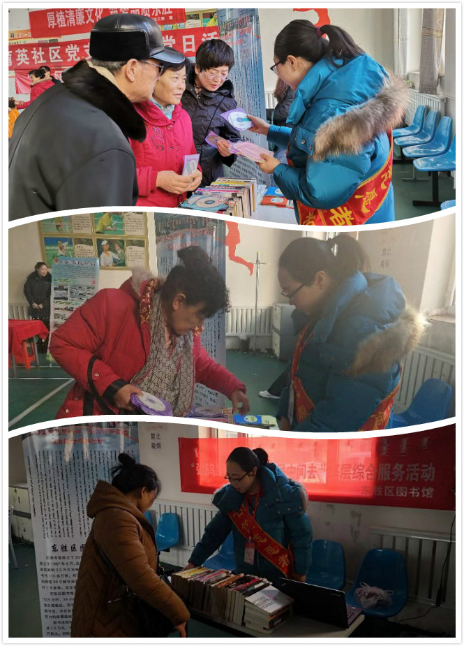 12月14日,东胜区图书馆服务宣传队跟随“弘扬乌兰牧骑精神 到人民中间去”基层综合服务队走进建设街道亿利金威社区站,冬日寒风冽冽,前来参加的群众热情不减,工作人员现场为群众发放了各类宣传手册,提供书刊借阅服务,并解答了在场群众的问题咨询,为促进农村文化建设、丰富群众精神文化生活助力添彩。