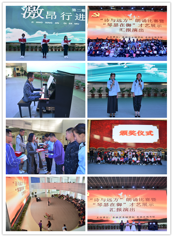 金秋十月,天高云淡,秋风送爽,怡人的景色洒满初秋的大地。在悠扬的音乐声和优美的舞姿中,由东胜区图书馆与东胜区东联学校联合举办的《诗与远方》诵读比赛暨首届“琴瑟在御”才艺展示汇报演出拉开帷幕。 此次活动旨在培养学生的朗诵能力,提升学习语文的兴趣,创造语文学习的氛围,让家长参与并支持孩子们的语文学习。东胜区图书馆积极主动发挥“第二课堂”教育职能,为学生提供广阔的平台,凭其展示特长、才艺,在思想道德素质、文化素质、信息素质、创新素质等方面进行全方位、多渠道的培养。 演出由东联学校初一班学生自编自演自导,分为青春序曲、激昂行进、悠远情思三个篇章。同学们展示了《将进酒》《光的赞歌》等经典诗篇,那一首首闪烁着智慧的经典,让每一位参与诵读的选手都感受到了传统文化的魅力,也让听众的灵魂得到了洗礼。图书馆职工诵读的《我是共产党员》,感染力十足,声声朗诵让激昂的爱国文字飘进了每位学生心里,为这个欢乐祥和的国庆假期增添了浓浓的爱国情怀。同学们的钢琴、古筝、小提琴弹奏,相声,舞蹈,歌曲等才艺表演,将活动不断推向高潮。 参与活动的一位学生家长表示,在国庆假期能与孩子一起参加这样的活动感到十分有意义,既感受到了孩子们的青春气息,也看到了他们的成长。我的孩子能在这么大的舞台上自信大方地表现自己,我十分欣慰。活动结束后,每位学生办理了读者证,老师根据同学们的兴趣能力整理了阅读书目单,鼓励学生多到图书馆阅读学习,在图书馆汲取文化营养。