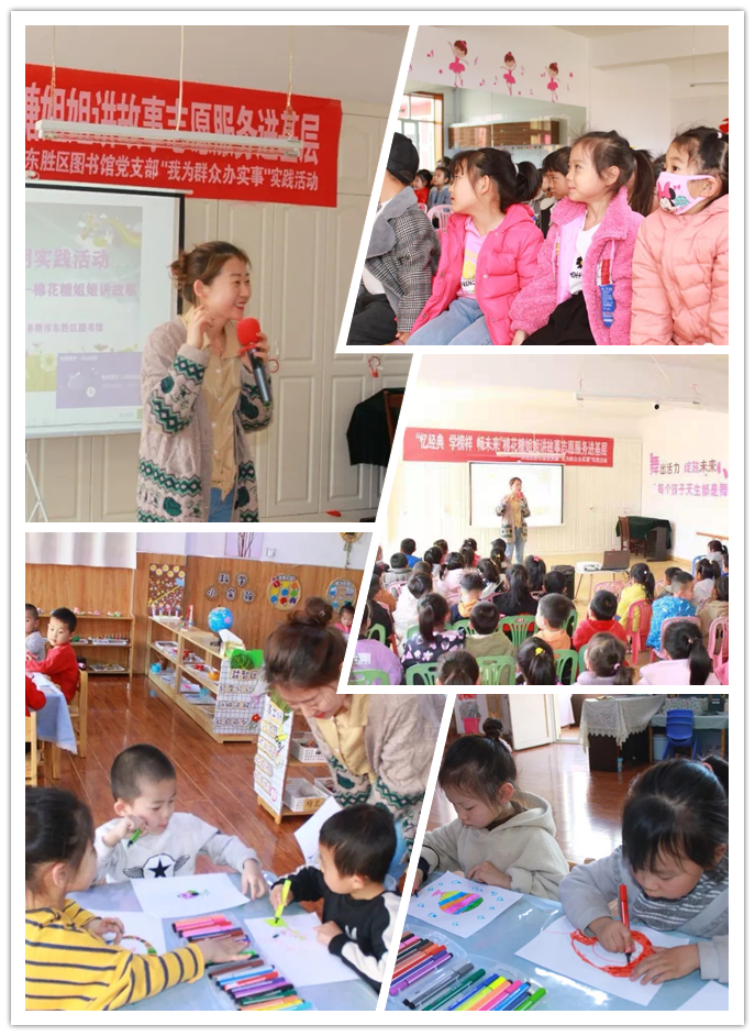 “忆经典 学榜样 畅未来”棉花糖姐姐讲故事志愿服务进基层--东胜区图书馆党支部“我为群众办实事”实践活动4月16日走进东胜区旭禾幼儿园.
