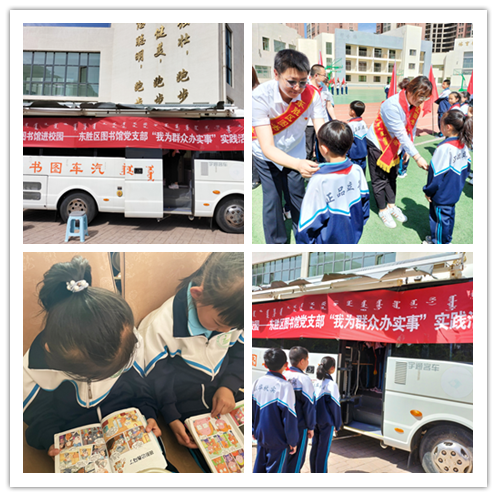 为庆祝中国共产党成立100周年,东胜区图书馆党支部紧紧围绕党史学习教育,发挥传承文明服务社会的职能,从满足读者实际阅读需求出发,6月7日,开展流动图书馆进校园--“我为群众办实事”实践活动,实现图书资源共享,营造全民阅读的良好氛围。
