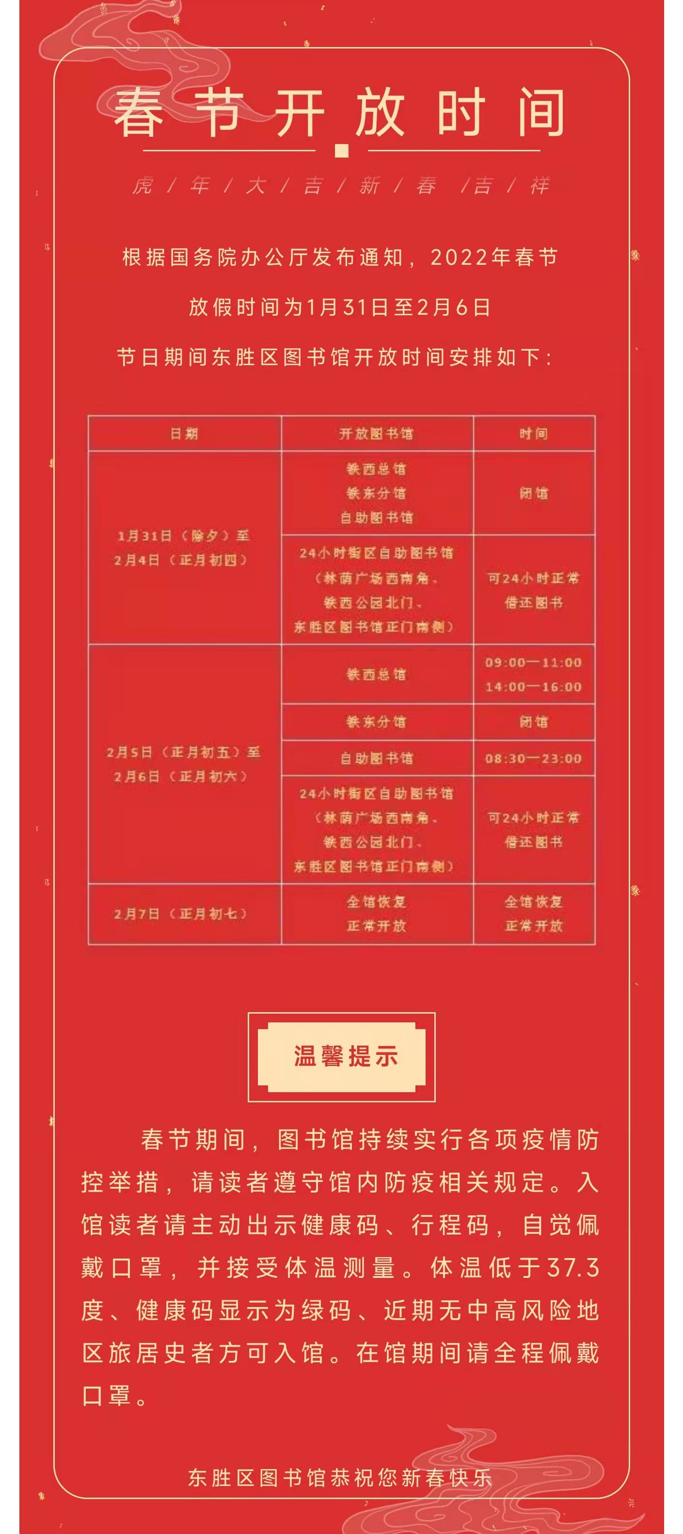 东胜区图书馆2022年春节开放时间
