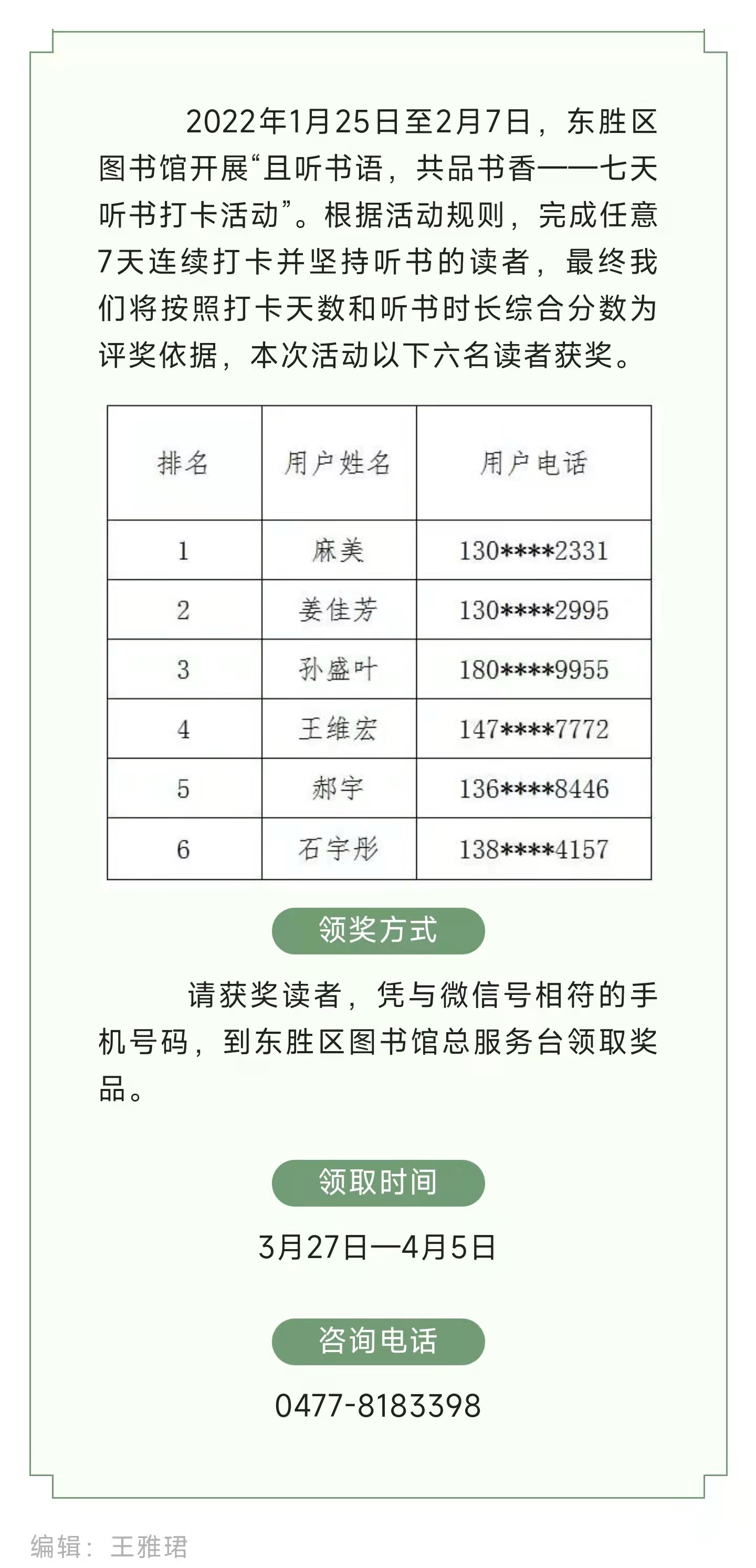 获奖公告丨且听书语,共品书香——七天听书打卡活动